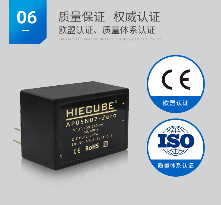品牌:HIECUBE 型號:AP05N07-Zero 隔離耐壓:3000VAC 輸出電壓精度:±1% 電源類別:工業級ACDC電源模塊 模塊質保年限:3年