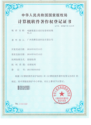 恭喜廣州高雅信息科技有限公司獲得多項計算機軟著登記證書