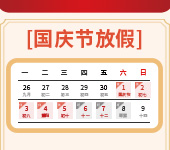 根據(jù)《國務院辦公廳關(guān)于2022年部分節(jié)假日安排的通知》,結(jié)合本公司的實際情況,現(xiàn)將2022年國慶節(jié)放假安排通知如下: 放假時間: 2022年10月1日至5日放假調(diào)休,共5天。 10月6日至8日正常上班。 10月9日休息。 請相關(guān)客戶與合作商提前做好準備,節(jié)假日期間我司會暫停生產(chǎn)和向外發(fā)貨服務。如客戶有特殊需求,請和我司相關(guān)業(yè)務人員聯(lián)系。如有造成不便,請諒解!謝謝!  …